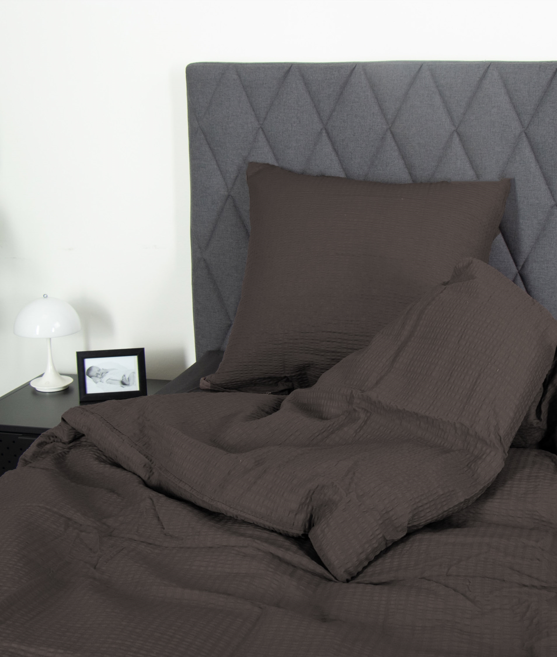 Bæk og Bølge dobbelt sengetøj 200x220 cm - Mørkegråt sengesæt - 100% bomuld - Krepp sengelinned - By Night
