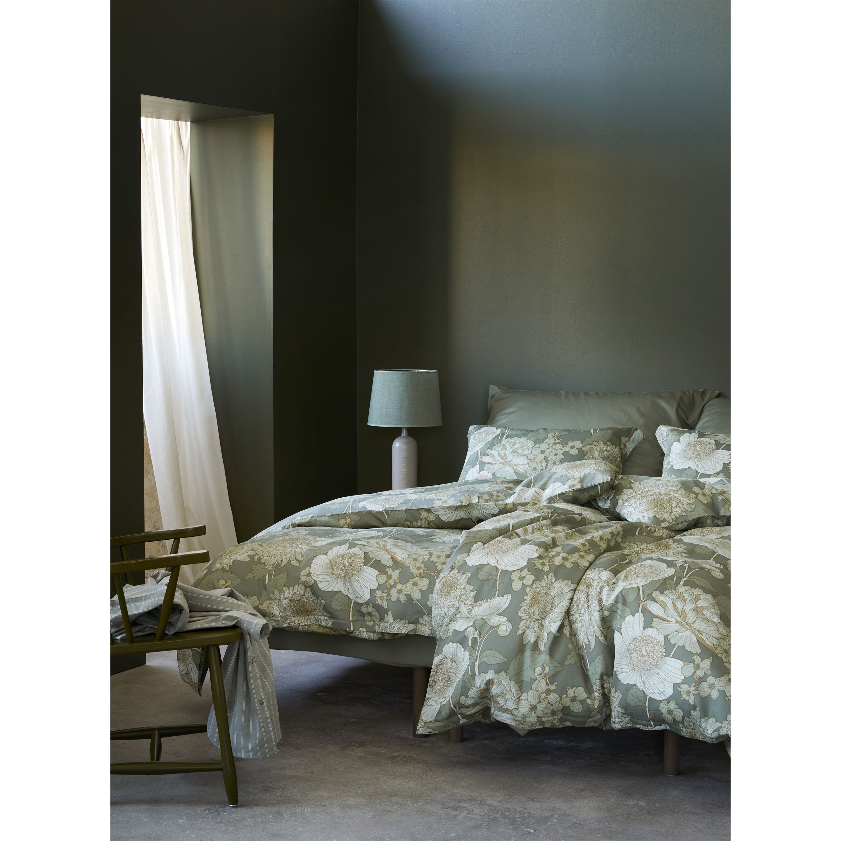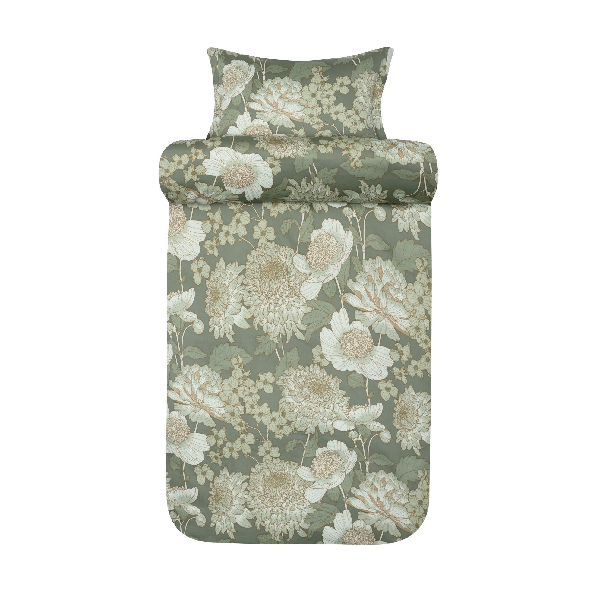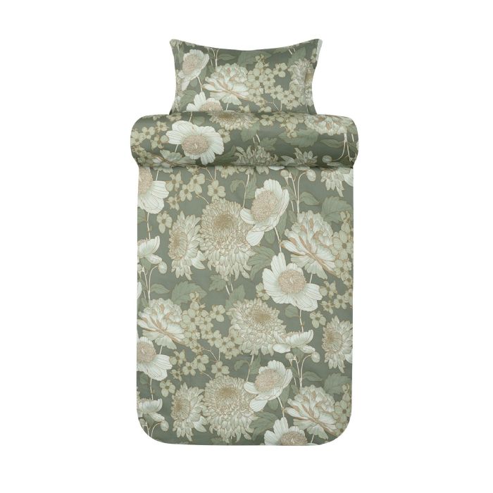 Blomstret sengetøj - 100% bomuldssatin - Isabell dæmpet grøn satin sengesæt - Høie Of Scandinavia sengelinned