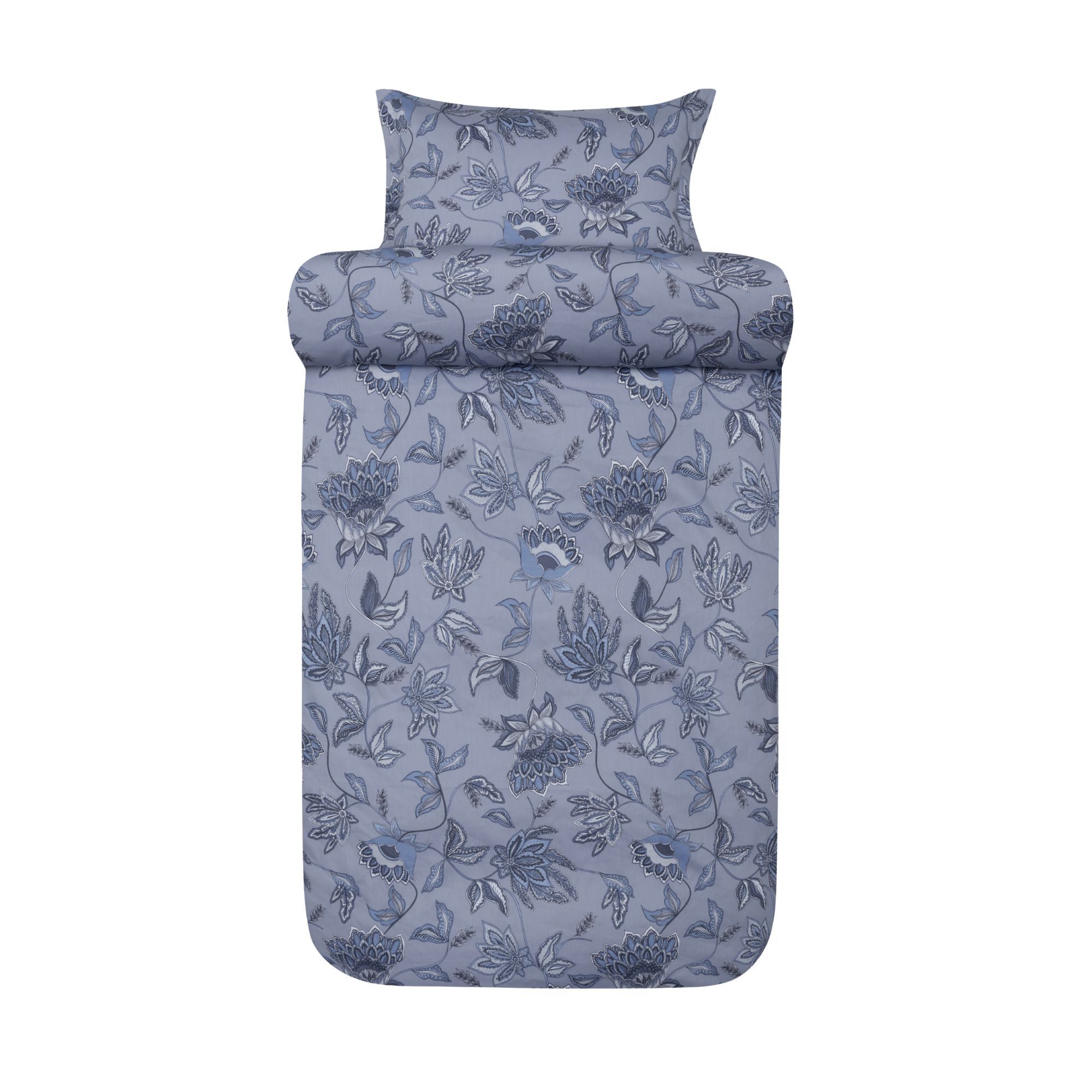 Blomstret sengetøj - 100% bomuldssatin - Mille denim blå satin sengesæt - Høie Of Scandinavia sengelinned