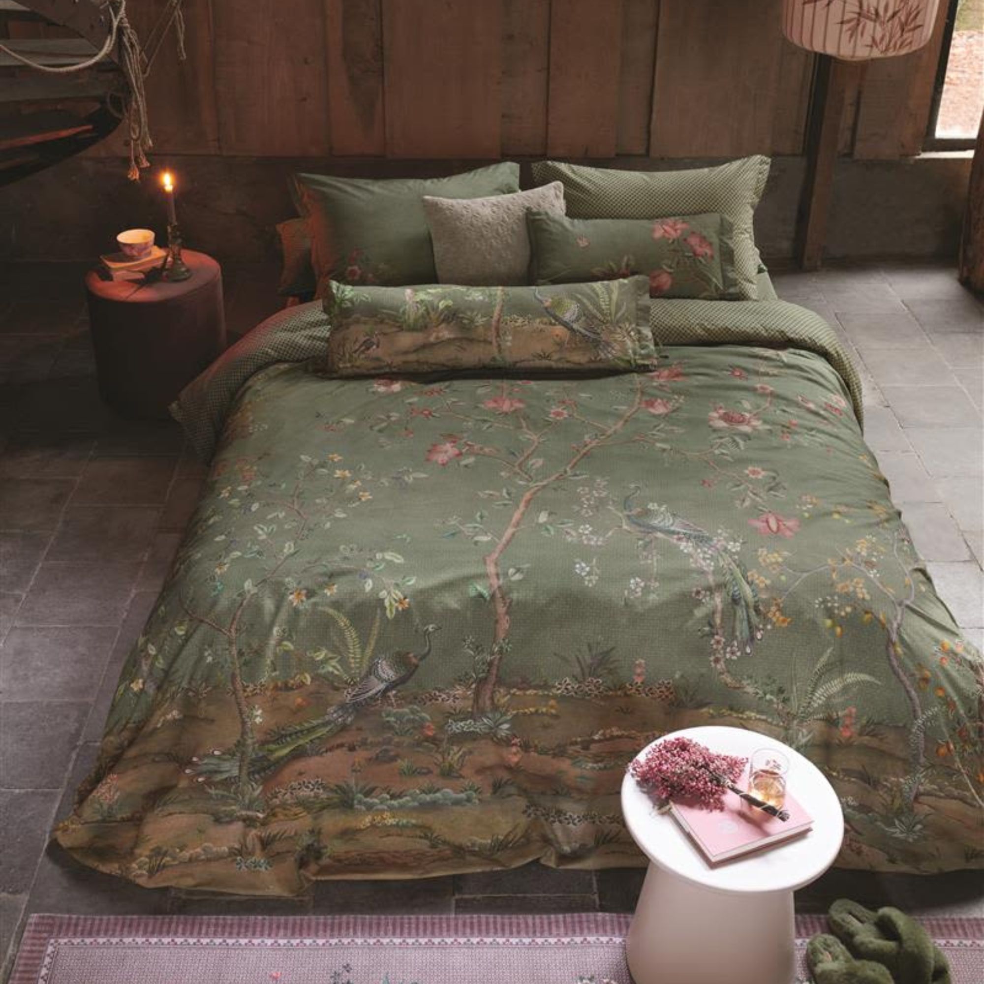 Blomstret sengetøj 140x220 cm - Grønt vendbart sengesæt i 100% blød bomuld - Okinawa green - Pip Studio sengelinned