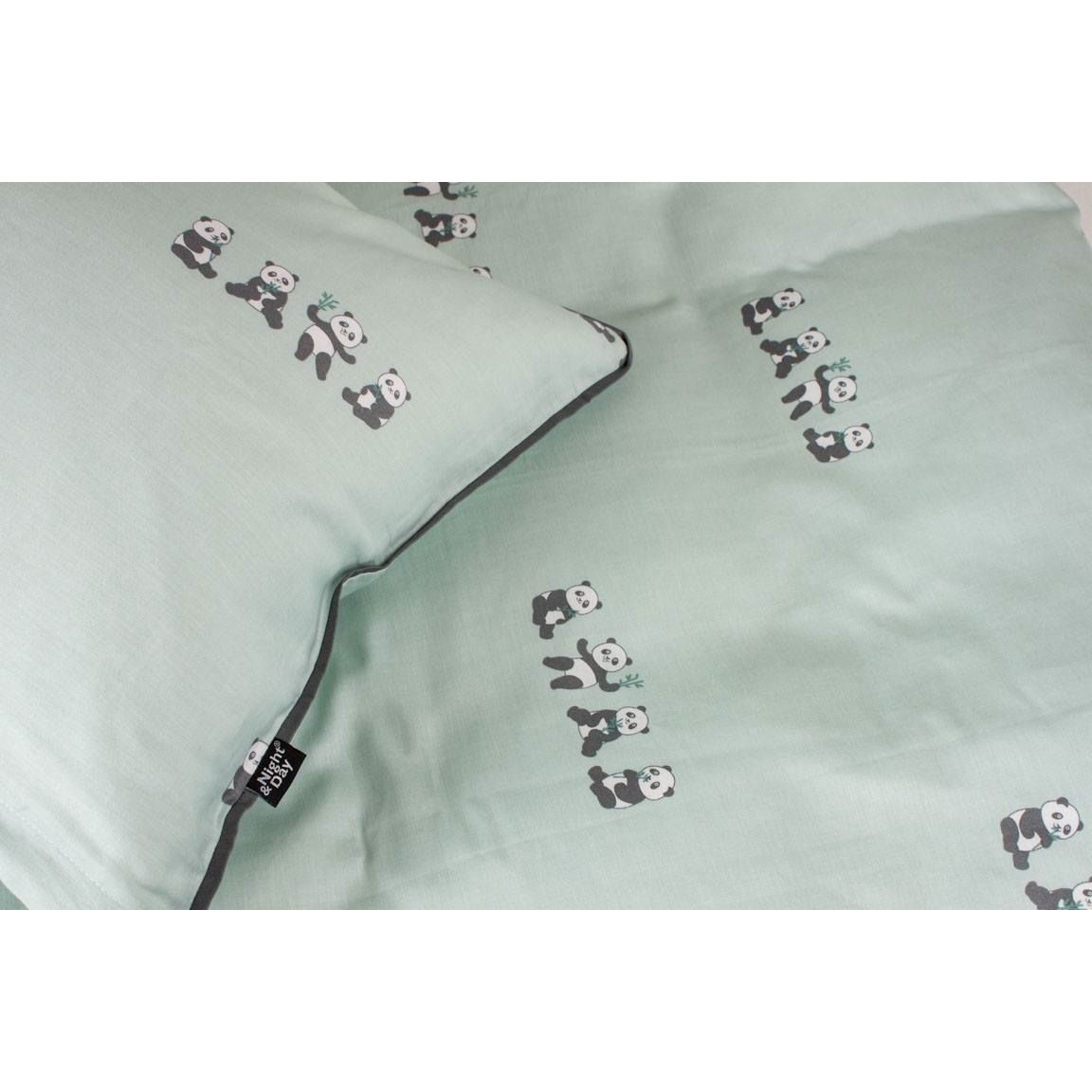 Børnesengetøj - Panda mint sengesæt - 100% økologisk bomuld - Night and Day sengelinned