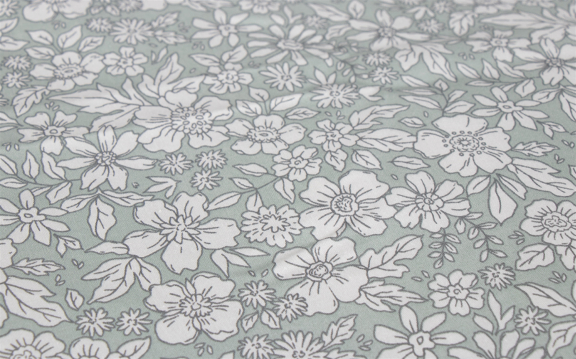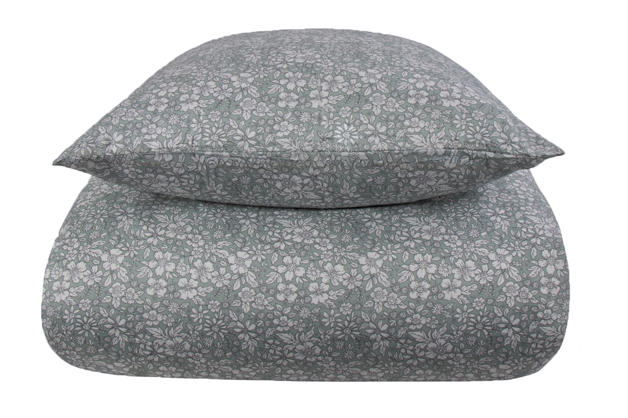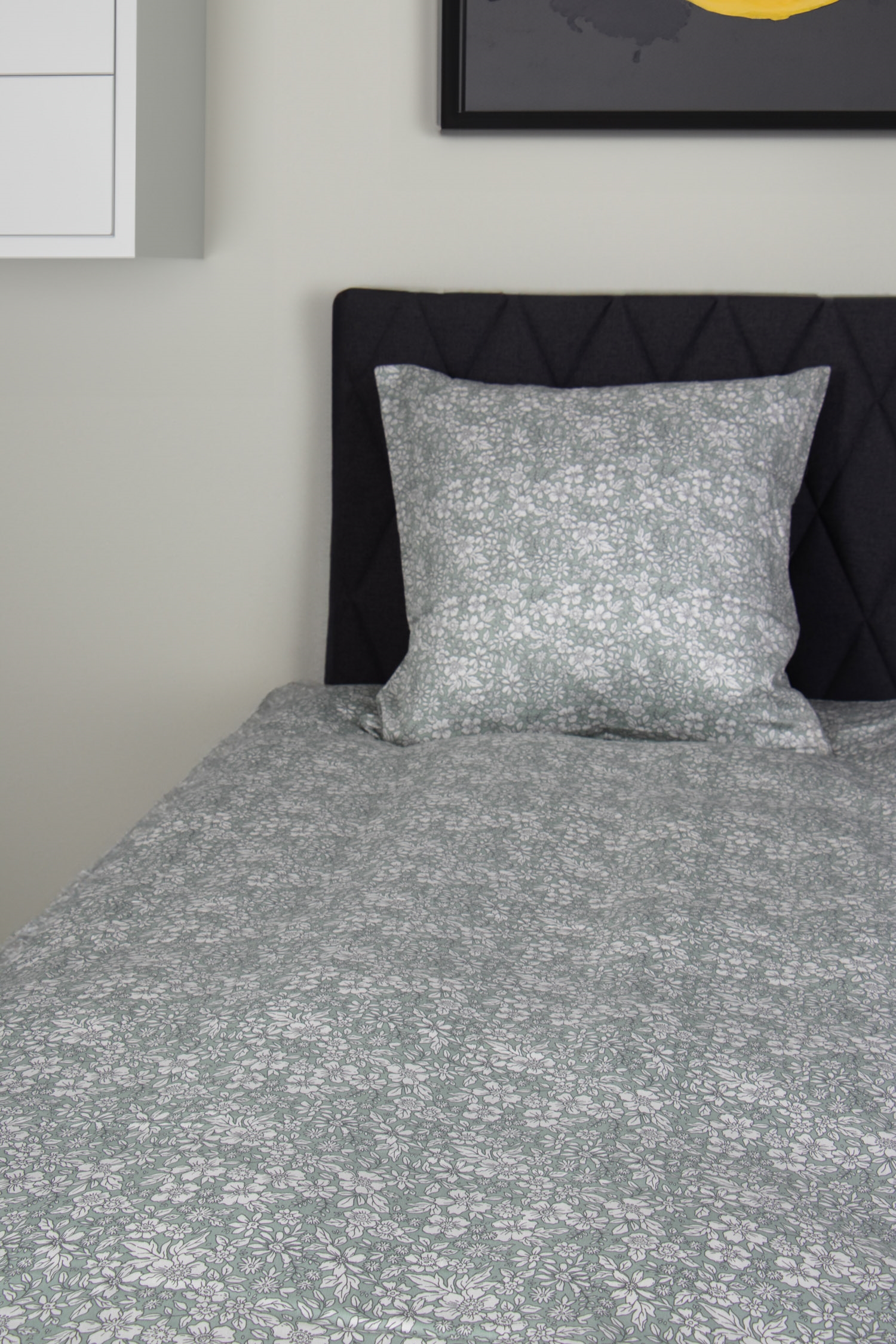 Dobbelt sengetøj 200x200 cm - 100% Blødt Bomuldssatin - Small Flowers dusty green - By Night - Blomstret sengesæt