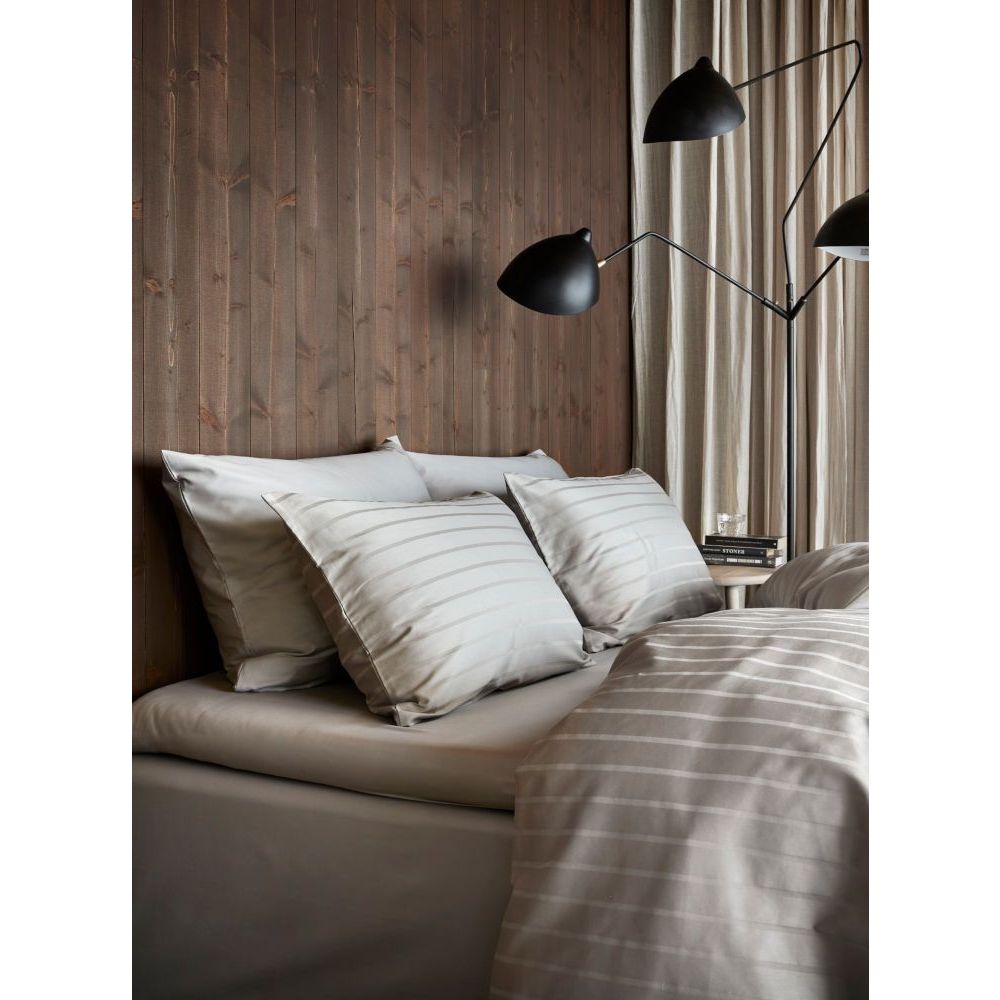 Dette stribet Milano sengesæt er fremstillet af 100% bomuld og vævet med en satinvævning, hvilke giver sættet en glat, blød og luksuriøs overflade med en let glans. Satinvævningen betyder, at stoffet har flere tråde på overfladen, hvilke resulterer i en mere glansfuld og silkeblød følelse. Det gør sengetøjet ikke blot behageligt mod huden, men også elegant at se på, hvilke giver soveværelset et eksklusivt look. Den høje kvalitet af bomulden sikrer, at materialet både er åndbart og fugtabsorberende, hvilket skaber et behageligt sovemiljø hele natten - varmt om vinteren og køligt om sommeren. Bomuldens naturlige egenskaber gør samtidig sengetøjet slidstærkt og let at vedligeholde, selv efter gentagne vaske.
