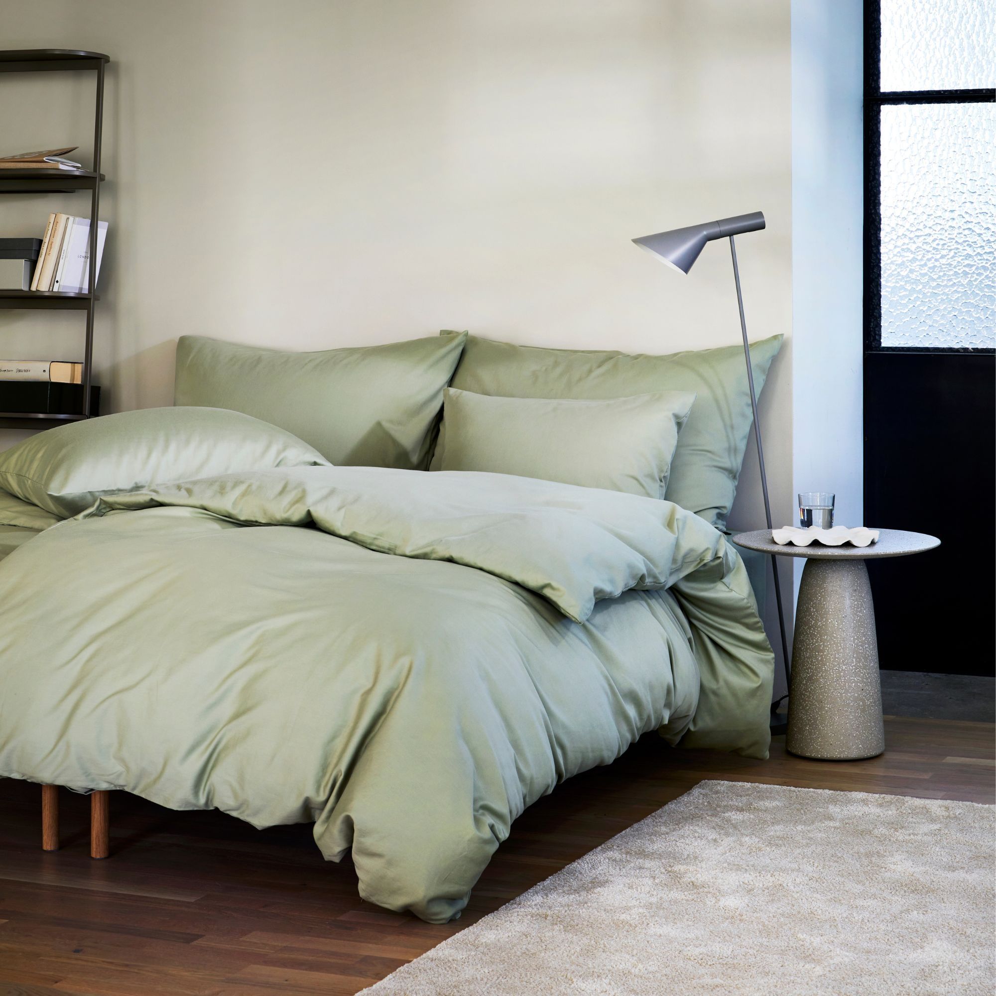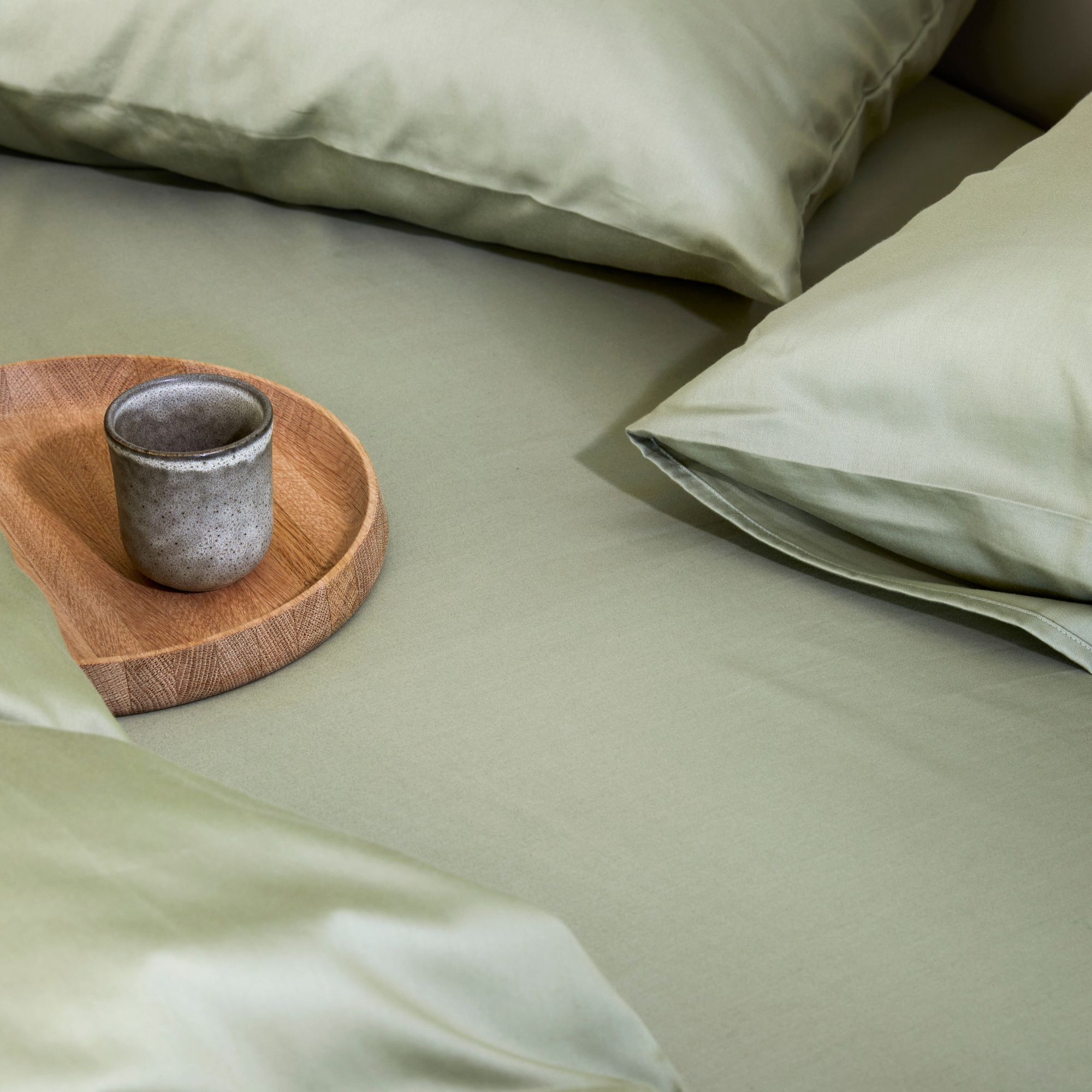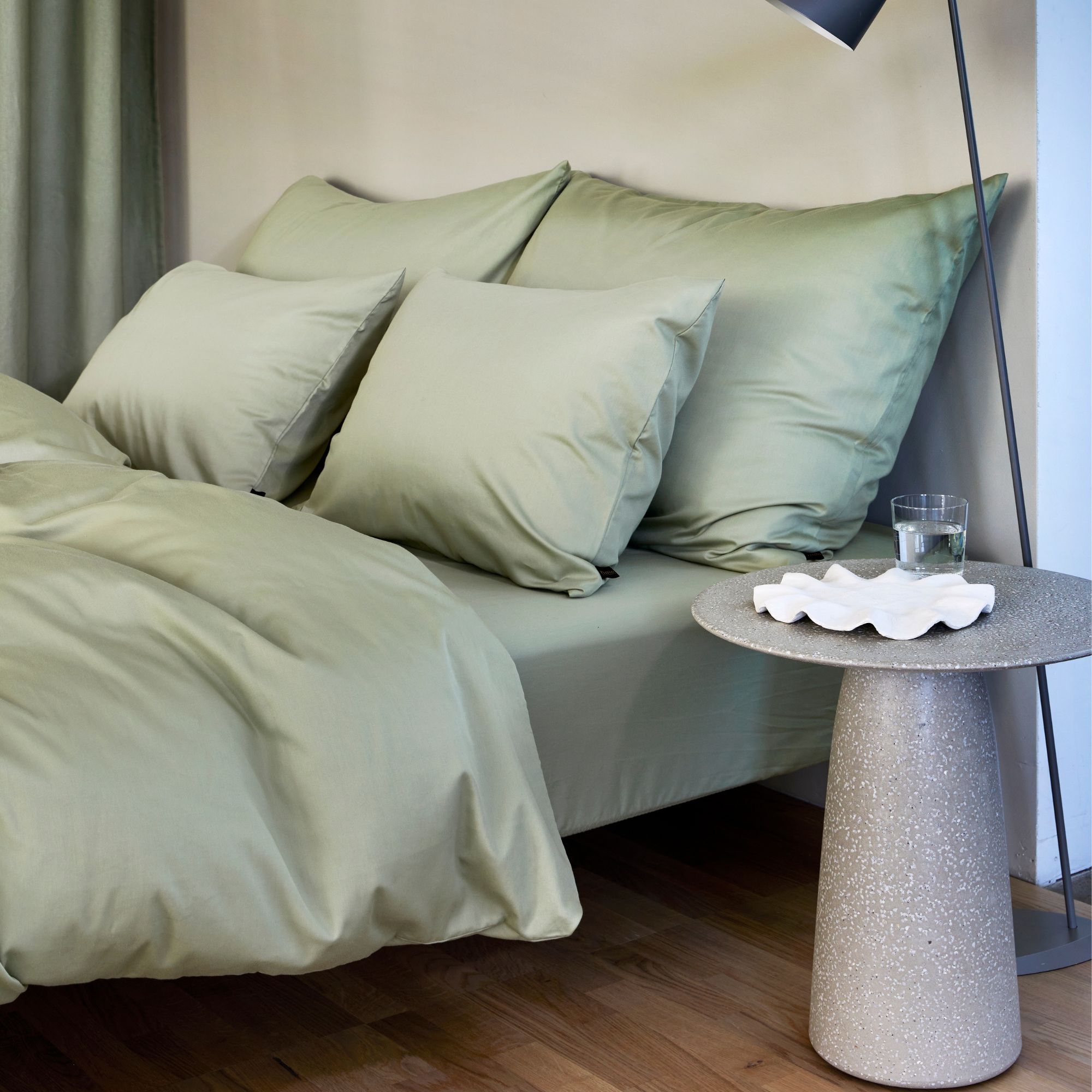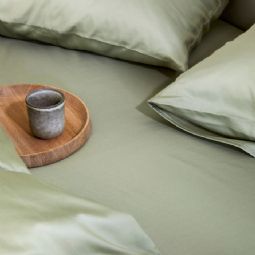 Ensfarvet sengetøj 140x220 cm - 100% stenvasket bomuldssatin - Harmoni lysegrøn - Høie of Scandinavia sengelinned
