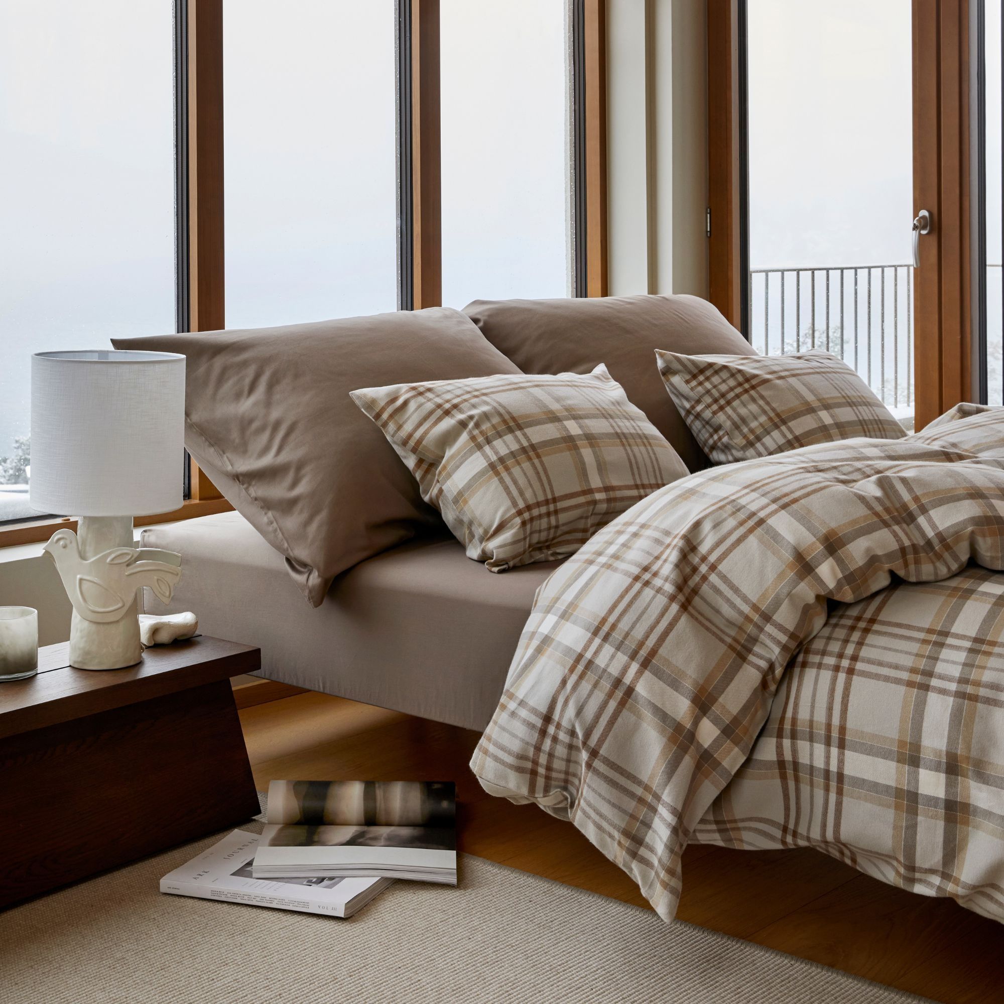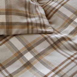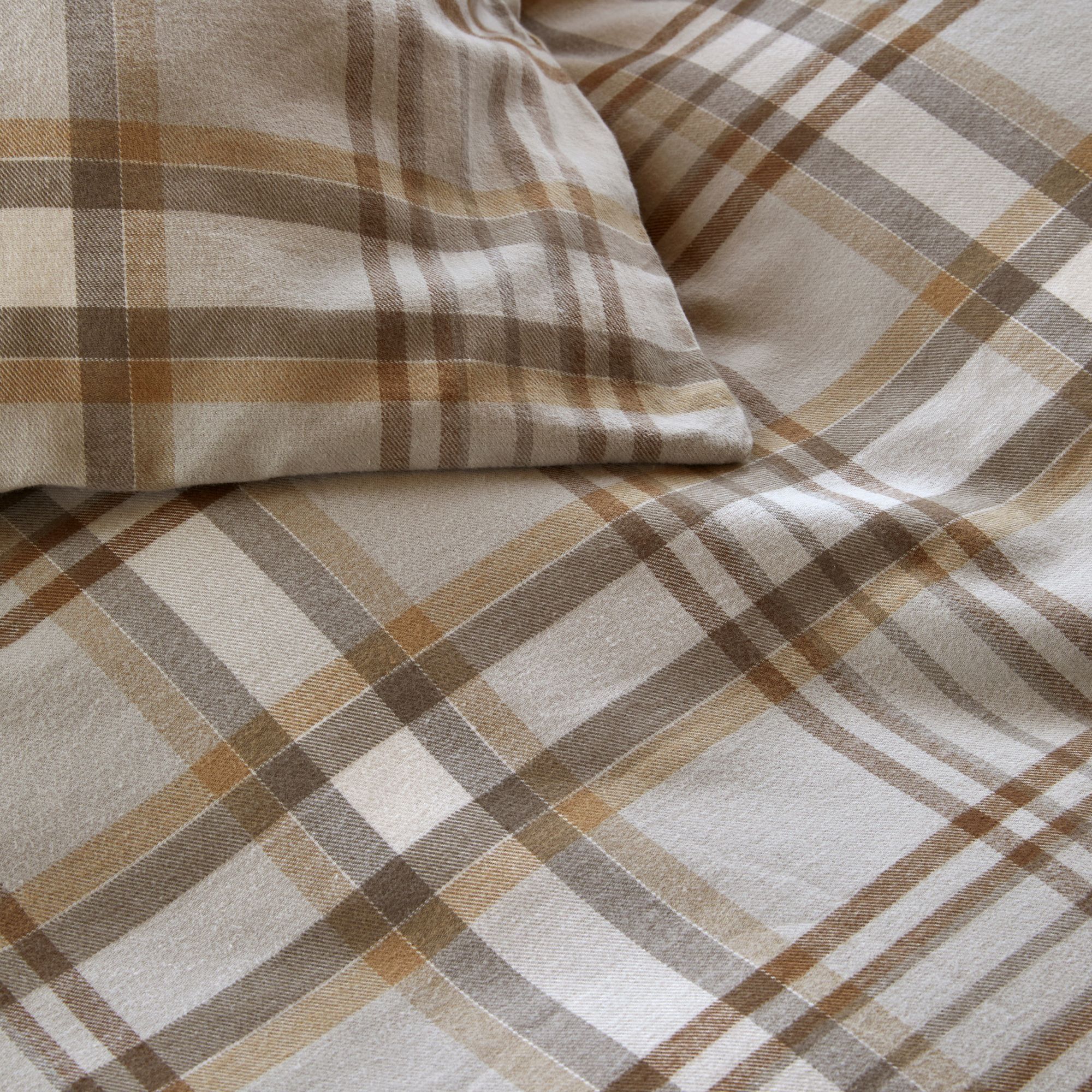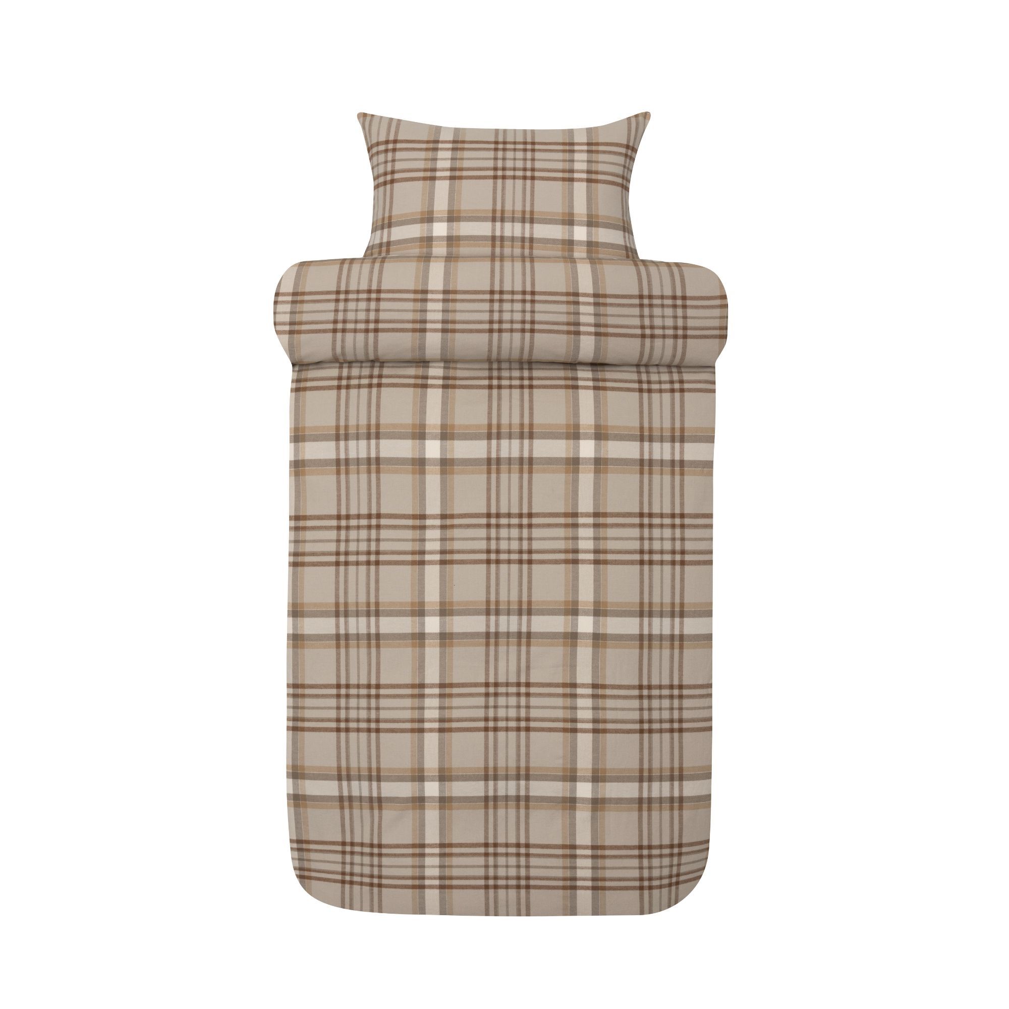 Flonel sengetøj 140x200 cm - Beige ternet sengesæt - 100% garnfarvet bomulds flonel - Richard Høie of Scandinavia sengelinned
