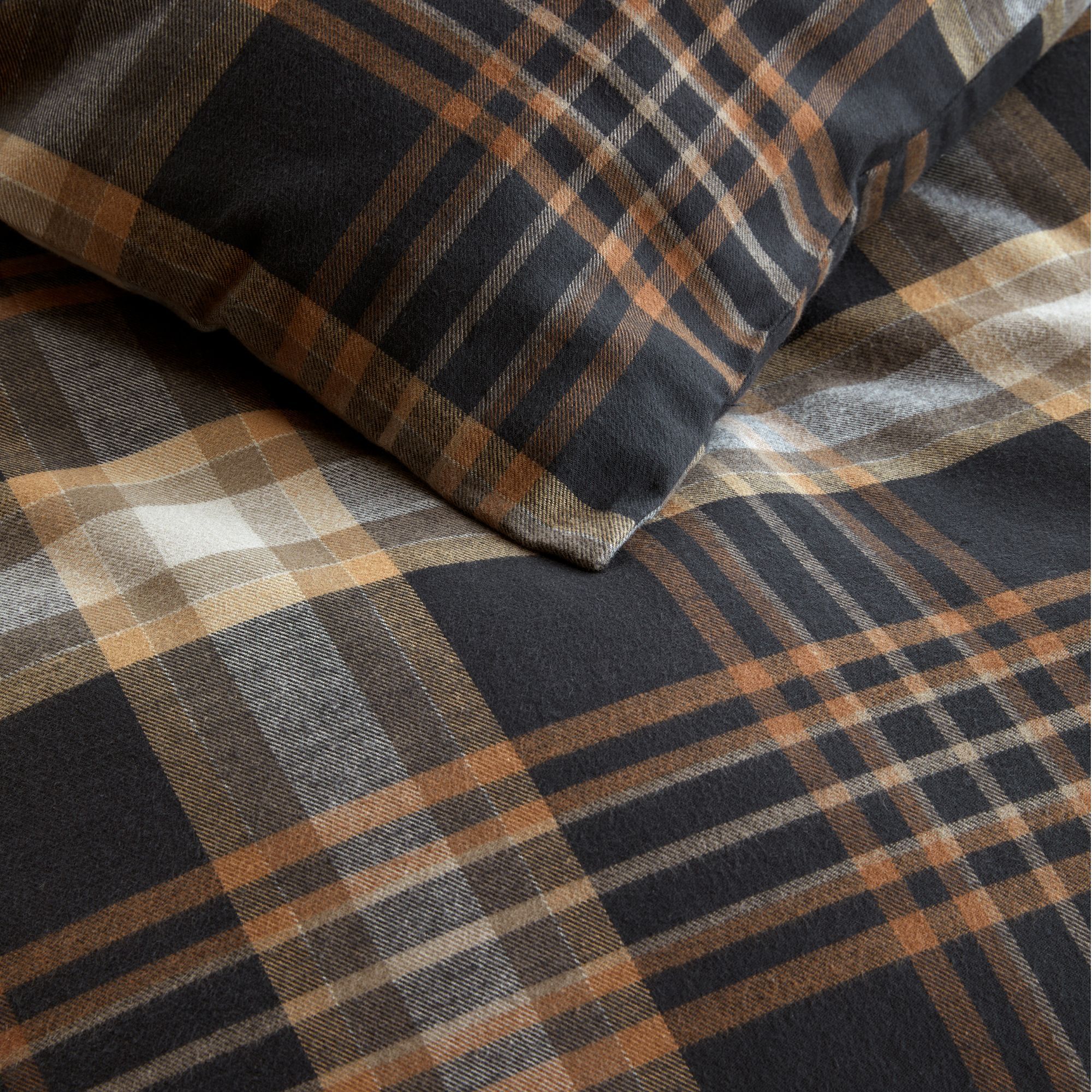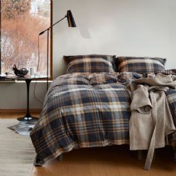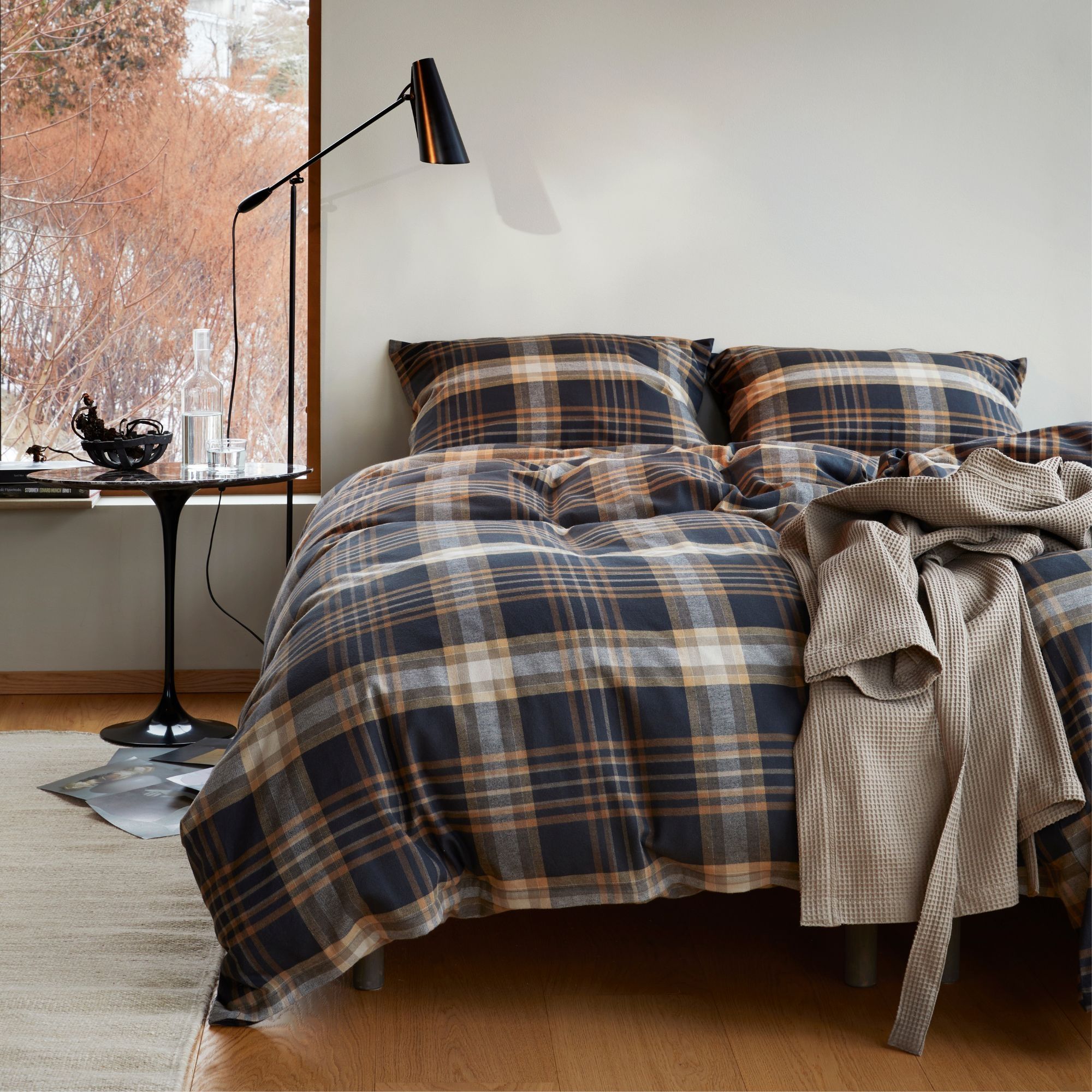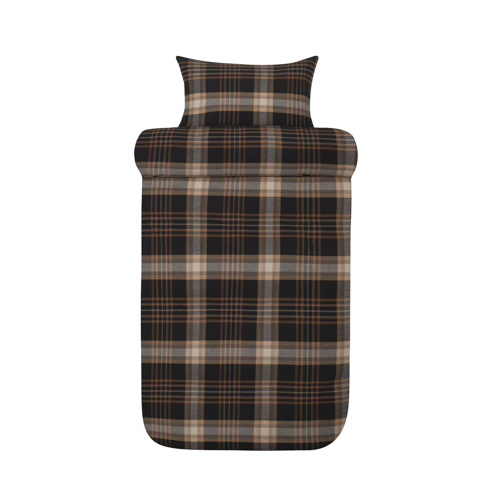 Flonel sengetøj 140x200 cm - Brunligt ternet sengesæt - 100% garnfarvet bomulds flonel - Richard Høie of Scandinavia sengelinned