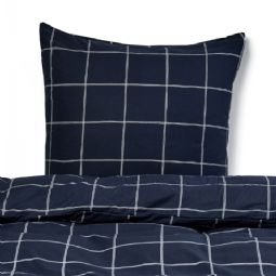 Sengetøj 100% bomuld - Mørkeblåt sengesæt med hvide tern - Nordstrand Home dynebetræk