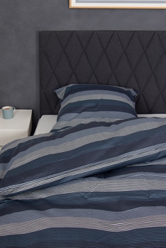 Stribet sengetøj 150x210 cm - 100% Blødt bomuldssatin - Big Stripes Blue - By Night sengesæt