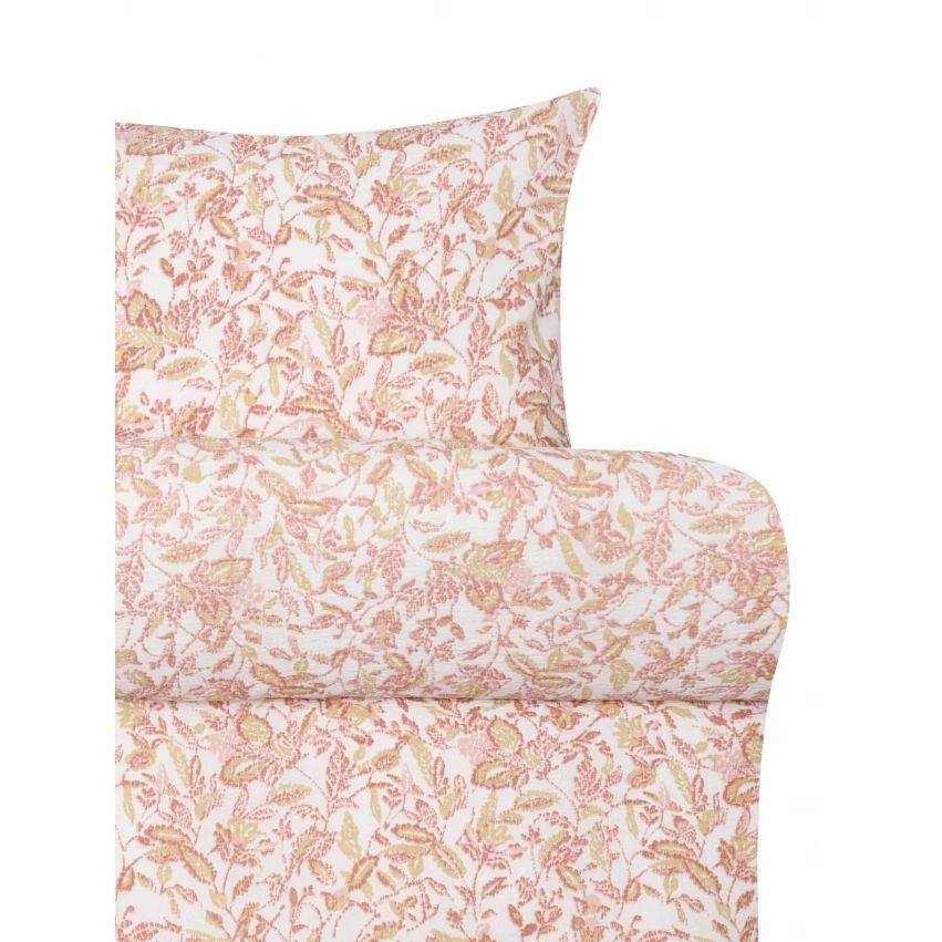 Vævet krepp sengetøj - Lyserød sengesæt med blade - 100% blød bomuld - Bæk og bølge sengelinned - Barbro Høie Of Scandinavia